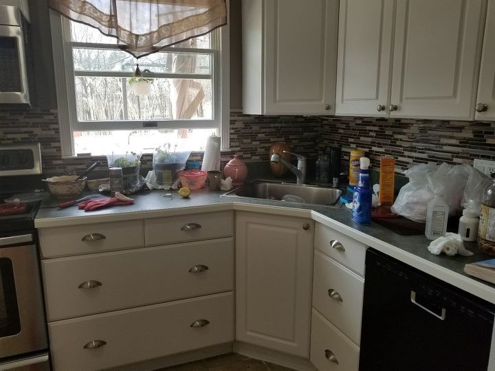 Kitchen makeover: redo over 80s melamine and oak trim ...